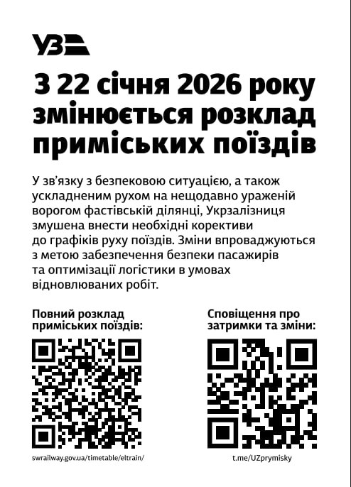 🔹 Новий розклад вступає в дію з 22 січня 2026 року.