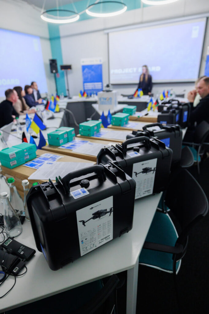 Передача обладнання відбулася після засідання Проєктної ради, яке об’єднало національних та місцевих партнерів для обговорення прогресу та наступного етапу відновлення на основі даних. У засіданні взяли участь представники Міністерства розвитку громад та територій України, Державної служби України з питань геодезії, картографії та кадастру, а також представники пілотних громад. До обговорення приєднався також представник Державної служби статистики України.