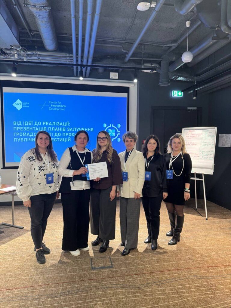 Дякуємо експертній команді проєкту PACT та менторці Ользі Макаровій за фахову підтримку, супровід і допомогу у розробці планів залучення громадськості.