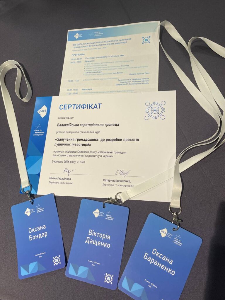 По завершенню тренінгового курсу Балаклійська громада отримала сертифікат “Залучення громадськості до розробки проєктів публічних інвестицій”